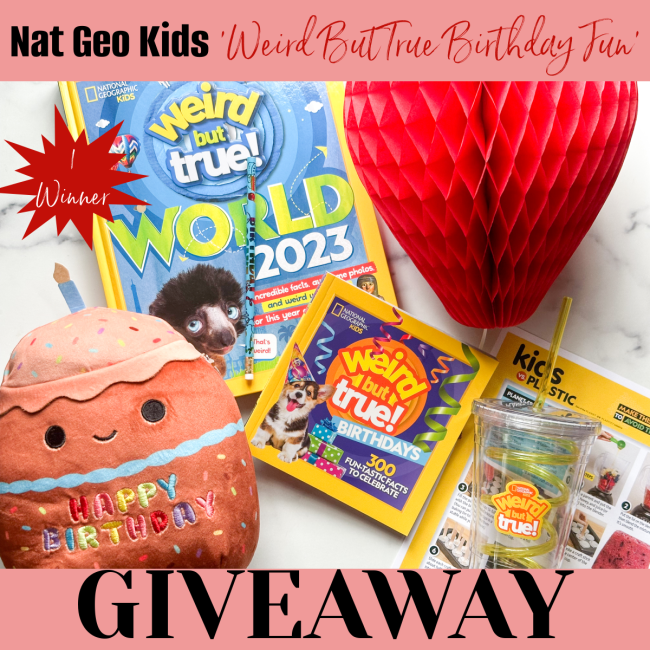 1 Lucky Winner Will Win a “Weird But True Birthday Fun’ Package from Nat Geo Kids Valued at $70!