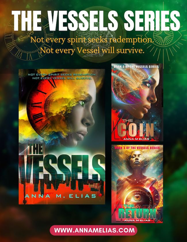 The Vessels is a supernatural sci-fi trilogy by screenwriter Anna M. Elias. In this thrilling and emotionally captivating novel series, police detective Tallulah Davis loses everyone that was ever important to her. Ready to end her life, she is saved by a secret Vessels program in Reno, Nevada and leads a diverse group of equally broken strangers who become human Vessel hosts for spirits that return to seek forgiveness, restore love, and right wrongs from their past. By doing so, the spirits elevate humankind and earn their place in Elysium. But — not every journey goes as planned, not every spirit seeks redemption, and not every Vessel survives. Especially when the spirit of a serial killer returns and goes rogue in his quest for revenge.
