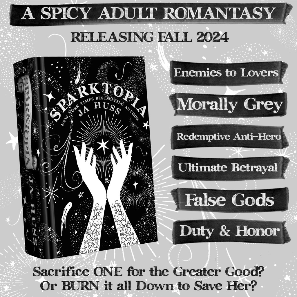 Sparktopia is a multiple first-person fantasy romance packed with spice and morally-gray characters with extraordinary powers. It includes the themes of duty and honor, false gods, ultimate betrayal, and redemptive hero.