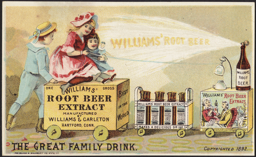 Williams’ Root Beer extract manufactured by Williams & Carleton, Hartford, Conn. The great family drink. [front] courtesy of Openverse