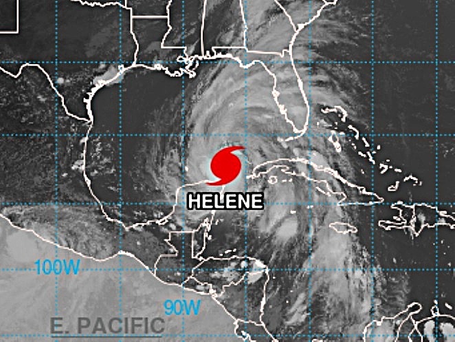 4. Hurricane and tropical storm conditions are expected over northeastern portions of the Yucatan Peninsula of Mexico this evening where Tropical Storm and Hurricane Warnings are in effect. Tropical storm conditions are occurring over portions of western Cuba within the Tropical Storm Warning area, and hurricane conditions are possible this evening within the Hurricane Watch area. Helene will bring heavy rain to portions of the western Caribbean with potentially significant flooding across western Cuba and the northeastern Yucatan Peninsula into early Thursday.