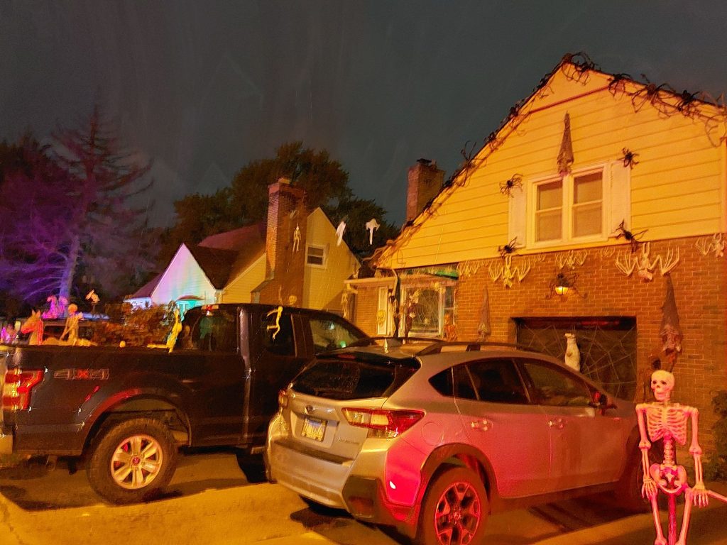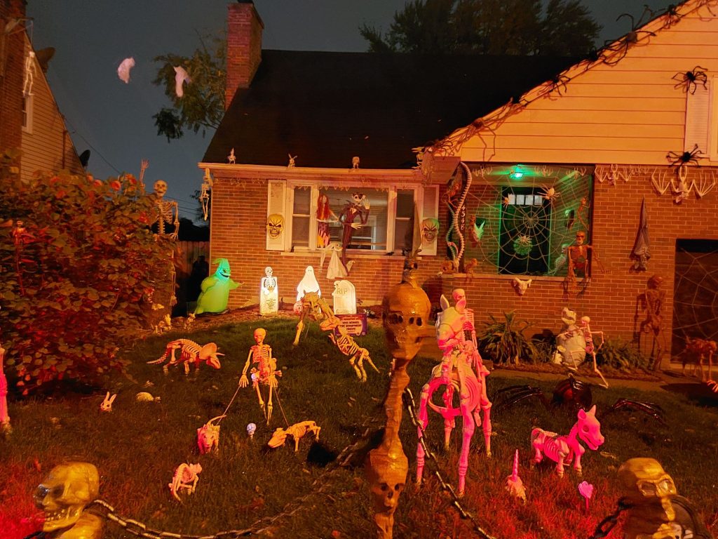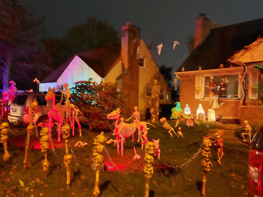 Display w/lit props including ghouls, and various lighting scenarios. This site is next to the graveyard site nextdoor, to be featured in tomorrow’s post.