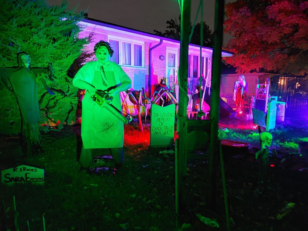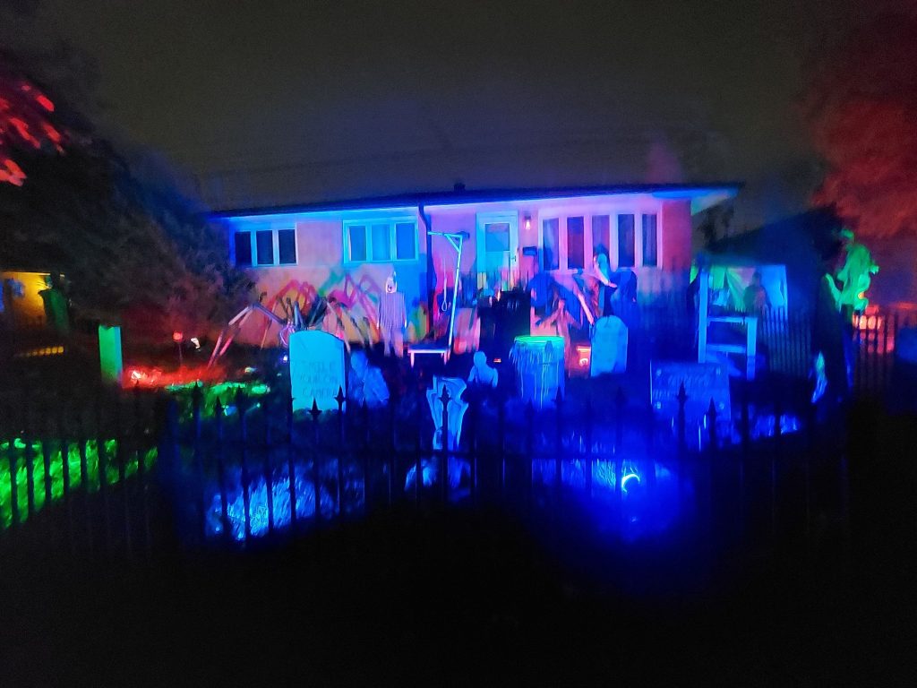 Walk-through haunt with actors, clowns, and major sound effects & Display w/lit props including tombstones, ghouls, and various lighting scenarios.