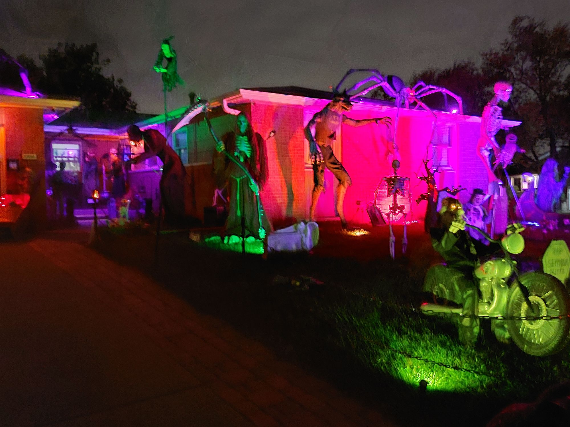 Today’s location is: Kaleb’s House of Shrieks, plus 2 extra houses to make a trio, main house in middle at 5900 School Street in Oak Forest, Illinois.