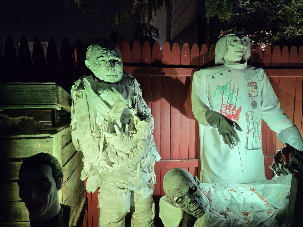 Display w/lit props including ghouls, tombstones, and various lighting scenarios. a rebranded display featuring over 75 replicas of classic monsters and horror icons. Enjoy scare actors, scavenger hunts, music, and lights, but beware that the display may be too intense for young children.
