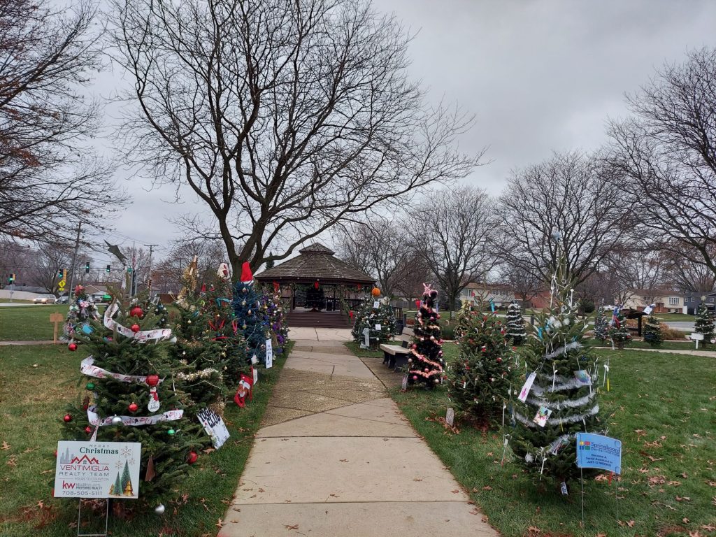 Today’s location is the display shows of all the Christmas Trees from the 2023 display at the Gazebo in City Hall Park in Oak Forest, Illinois.