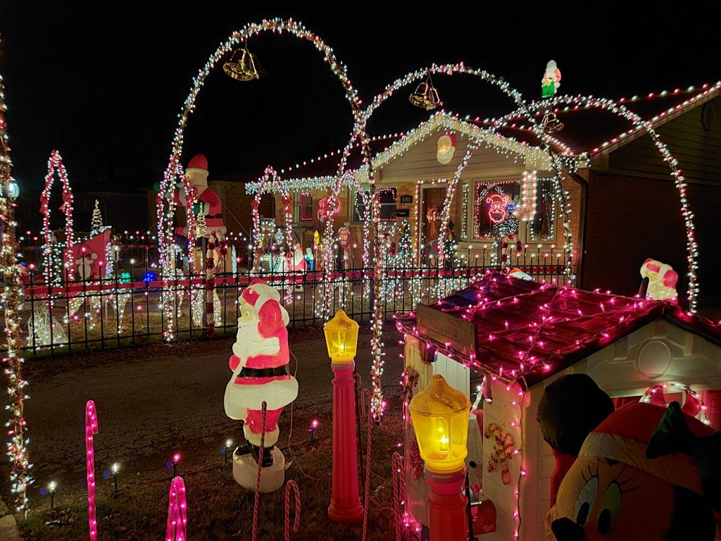 Today’s location is the Valenti Family Christmas House and Toy Drive at 6108 Washington Street, Chicago Ridge, Illinois (previously known at the Steven Smith Toy Drive). A numerous and uncountable amount of Christmas lights and handcrafted displays featuring the Grinch, Cindy Lou Who, a Frozen castle with its characters, Marvel icons Black Panther and Iron Man, reindeer soaring through the sky, Santa Claus, and an abundance of lights.