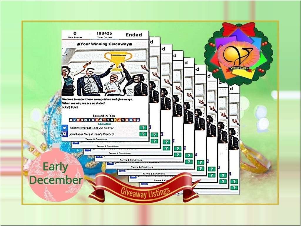 The list is a compilation as derived over the internet by third party sources, and are available by public domain. Listings are published in good faith, but Versatileer cannot guarantee the outcome of the listing. Not responsible for information regarding listed giveaways, or fulfillment of prizes. All images, logos, etc. are ©®™ as per the licensing per respective company. To report a giveaway that violates Gleam.io’s terms of service, contact Gleam Contact Support Form.