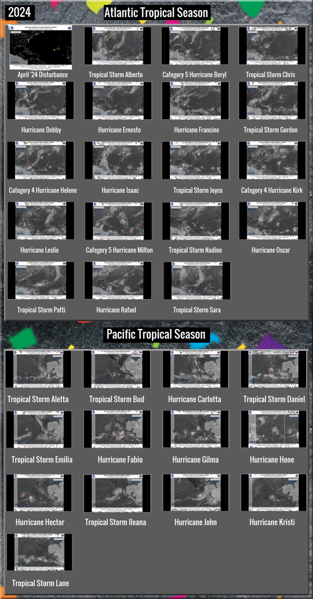 Because of the beauty from the eye in the sky. . .I am featuring a .GIF of the whole loop of both the Atlantic and the Pacific Hurricane season, all 32 event pages (6 less than the 2023 season, but more fierce). We return in spring with a full report & videos. ALL on YouTube & .GIPHY: