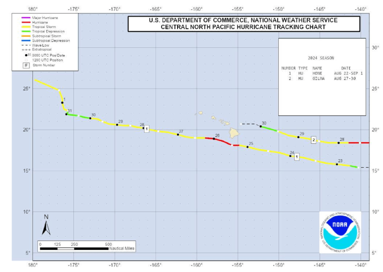 2024 North (Central) Pacific Hurricane Season Track Map ✱