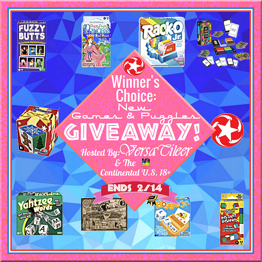 This giveaway/sweepstakes is in no way endorsed, affiliated, or associated with Facebook, Twitter or any other Social Media Networking Site. The giveaway consists of winner’s choice of $40 maximum between the choices from Holiday 2024 Games and Puzzles of the selection of Fuzzy Butts™, Pretty, Pretty, Princess® Card Game, Rack-O® Jr., That Color Speaks To Me™, Twistables® Holiday Puzzle, Yahtzee® Words, Ouija® Salem Edition, Boggle® Jr. & Instant Insanity® from Winning Moves Games. This Giveaway is valid to Continental United States residents (Lower 48 contiguous states) only, Entrants must be 18+ years of age to enter. This giveaway event will end at 11:59 PM EST (10:59 PM CST) 02/28/2025. The winner will have 48 hours to email their information back to versatileer at gmail dot com or a new winner will be drawn, you may want to put this email address as safe as it could go to spam. The giveaway is not valid where prohibited! Once a winner is drawn and confirmed, the name will be announced on the Rafflecopter form. Winning Moves Games will be responsible for sending the winners their prizes. Versatileer has been compensated to assist in furnishing the prize in this giveaway. By entering you are authorizing us to collect the information on the form below, this information is used only to contact the winner! No purchase necessary, Void where prohibited by law, and the number of eligible entries received determines the odds of winning. Winners are chosen randomly by Rafflecopter through the use of Random-dot-org. More giveaway terms and conditions are listed: HERE. The sponsors are each responsible for shipping of the above prizes. No blog associated with this contest are responsible for prize fulfillment. If you would like to become a sponsor in a giveaway like this please email Jerry Marquardt at versatileer at gmail dot com. If you take an entry you must stay following for the entire contest or you will be disqualified.