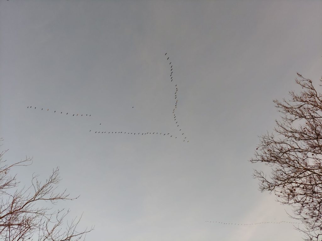 Here is today’s featured photo presentation of winter weather photos, with today’s presentation near Oak Forest, Illinois of birds flying south before a major drop in temperatures, and they are not making a pit-stop for anything. The birds are very smart! How else can you determine that a sudden drop in temperatures is on the way? They fly sometimes thousands of miles to escape the bitter cold, and when they get mild weather, move back up a bit, because these winter species do not like the warm weather either. A lot of flying if you were a bird! These photos were taken the day before an over 50° drop in temperatures of below zero bitterly cold weather was on the way while it was still in the +40’s°F. Note the beautiful blue skies to the south, and the greying skies to the north! Date – January 11, 2024