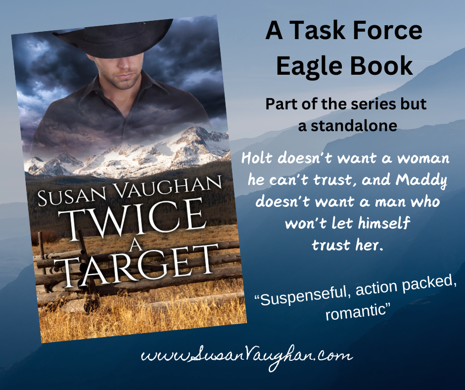 Review 1: “Seeking emotional romance and spine-tingling suspense? Susan Vaughan brings it home in Twice a Target.” – Ann Voss Peterson, bestselling author of Pushed Too Far