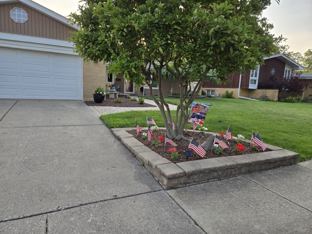 Location is “Style & Prestige with Flags & Flowers with Suburban Rural Appea” for Flag Day.