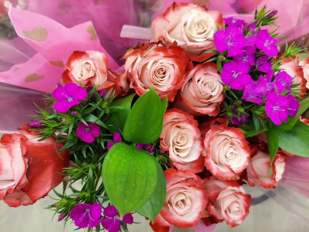 Here is today’s featured photo flower bouquet presentation. To let 2025 shine bright, I am featuring fine photos of flowers, continuing to honor the brighter side of life once again this year. Every week, I am featuring a special bouquet of flowers. Here is this week’s presentation, a combination of nice, bright mix and anytime flowers: An assortment bouquet including assortment of some White with Red Fringe Roses featuring with classic white Baby’s Breath (Gypsophila) and also Purple Dianthus, to continue July! – July, Week #4.