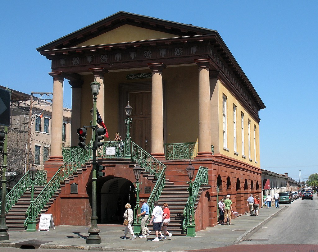 The Charleston City Market: Market Hall (1841) on Meeting Street, with the market stalls (1804-1830's) stretching behind it for three blocks along Market Street to East Bay St..jpg