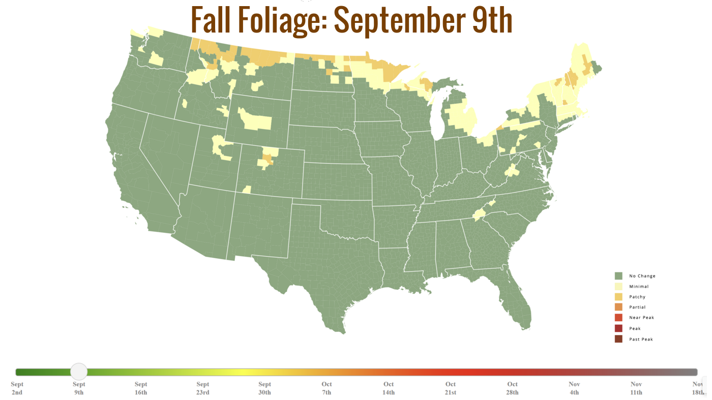 I always love following this map – it’s really interesting to see the patches further down south of the progression! WE are very much starting to see patches of trees starting to change here.. Im not ready for the fall!