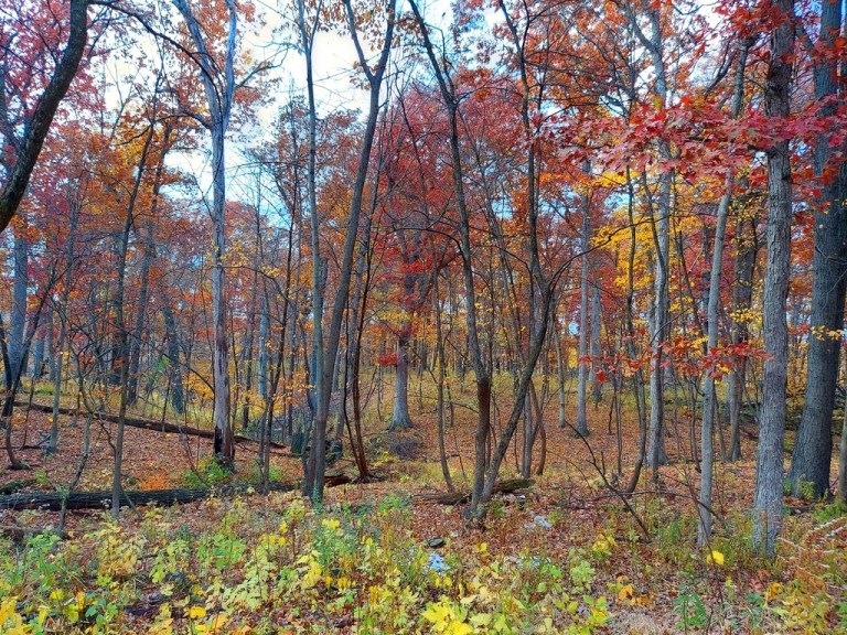 Here is today’s featured photo presentation of a month of #FallColor. Today’s photo is in the Schubert’s Woods near Sauk Trail in Bloom Township, Illinois. This is of a photo of a nice gove of Oak Trees (Quercus) & more.