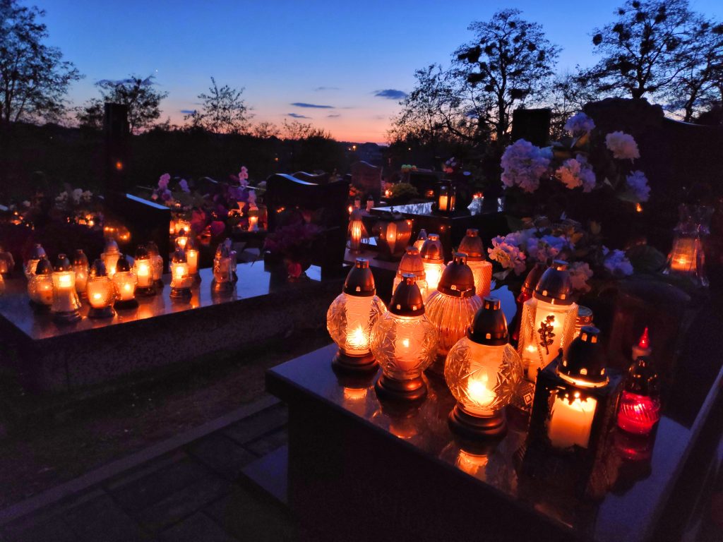 030 All Saints Day celebration in Poland – grave candles in the evening courtesy of Openverse